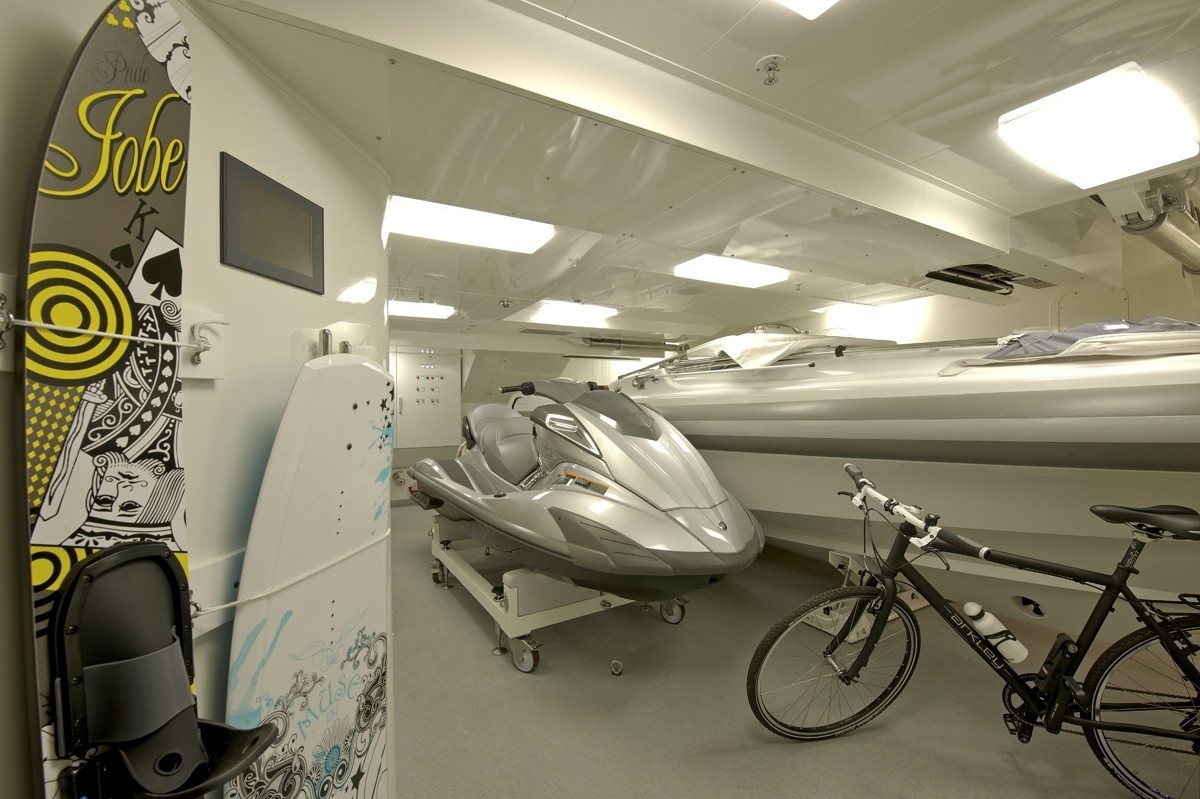 Upper deck saloon is an engaging open plan spacious lounge and bar area fitted out with game tables and two 61-inch HD flat screen TV's.