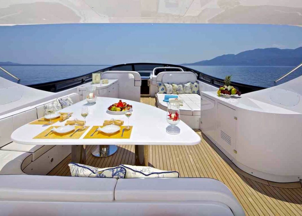 She has a generous half-moon shaped sofa seating 10-12 on the spacious sun deck, also offering BBQ and sunbathing area. There is a great sunbathing area fore with a sunbathing mattress at the very top complete with anti-slip stepping, and a three-seater sofa in front for a firsthand cruising experience.