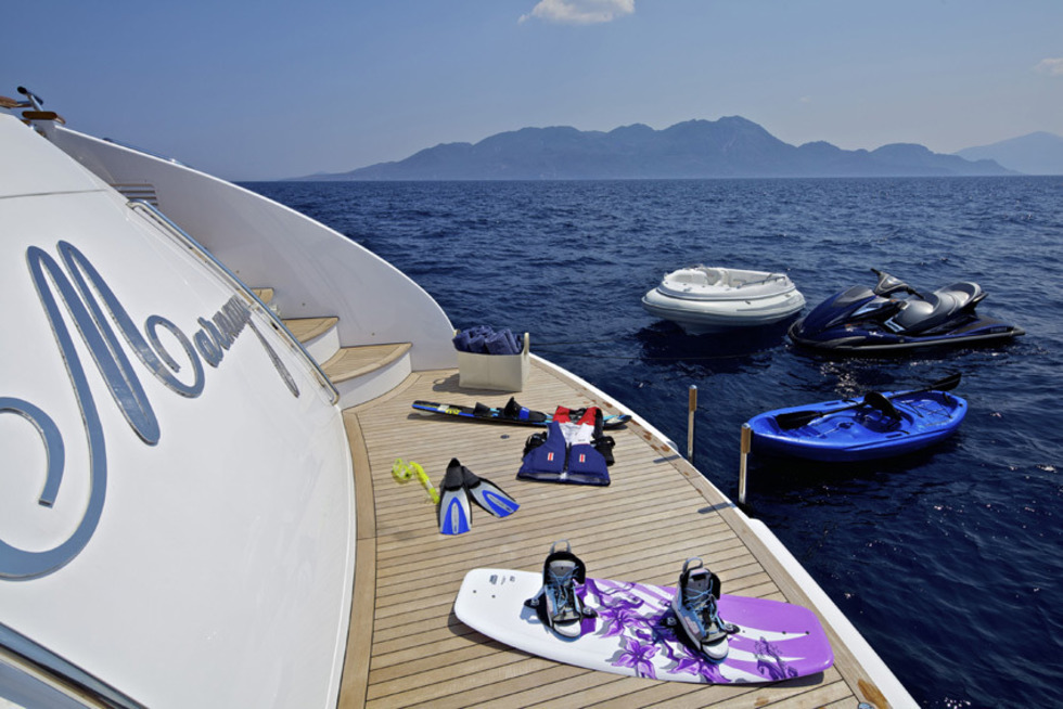 NOTABLE FEATURES OF BIANCA: ~ Plenty of sunbathing space ~ Water toys ~ Tender garage & wide selection of water toys ~ Top speed of 30 knots ~ stabilizers underway ~ WiFi ~ air conditioning