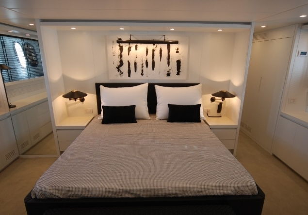 The luxury motor yacht Nicka includes a sleeping area on the lower deck, with the owners full beam suite located amidship. Centrally placed double bed, a corner for relaxing, an office corner, dressing room and a private bathroom are all comforts of the Owner's suite.