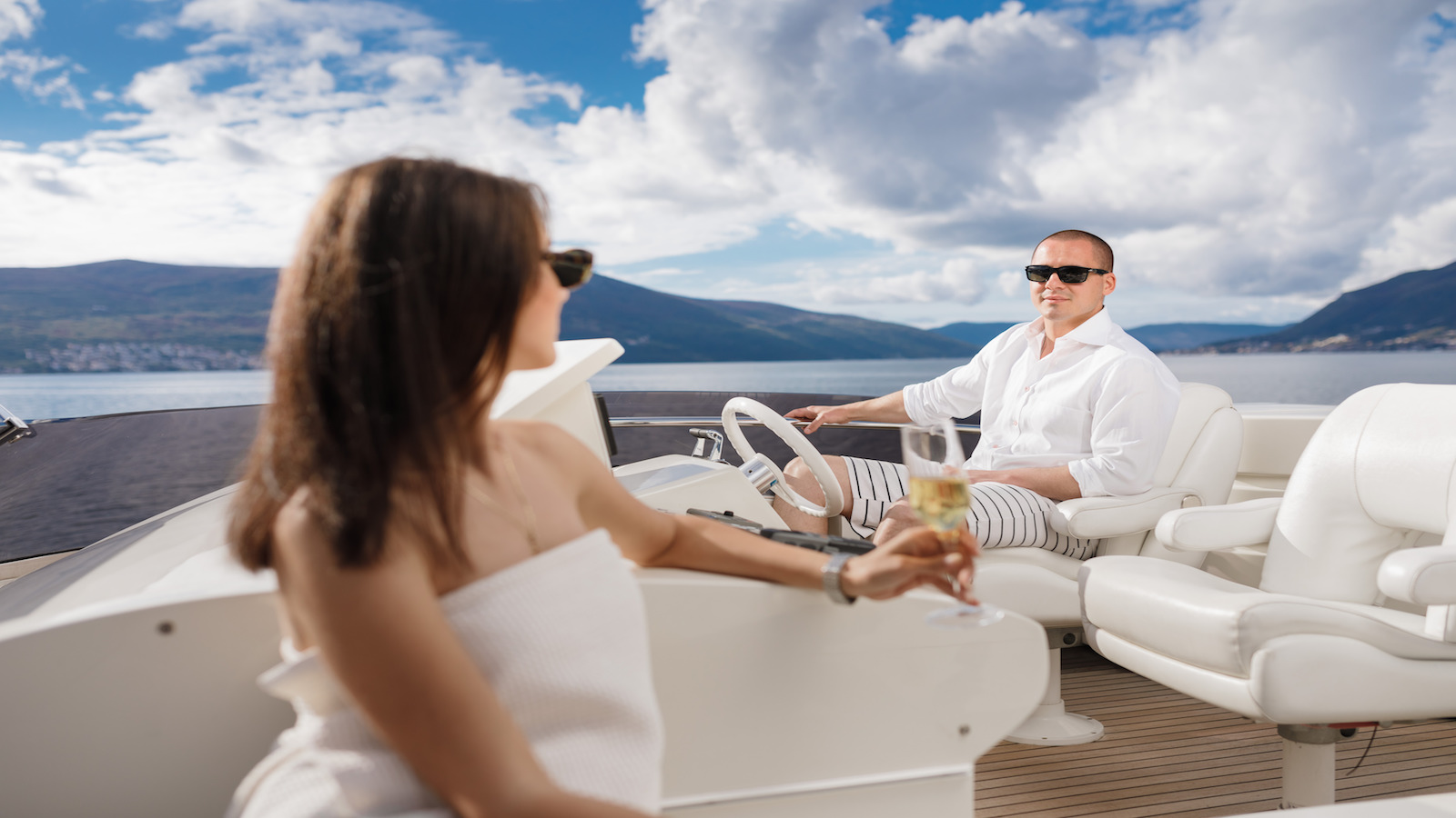NOTABLE FEATURES for SAINT ANNA 1: Sporty planing hull design ~ Excellent exterior living over 2 decks ~ Contemporary interior decor ~ Full beam master stateroom ~ Air conditioning ~ WiFi