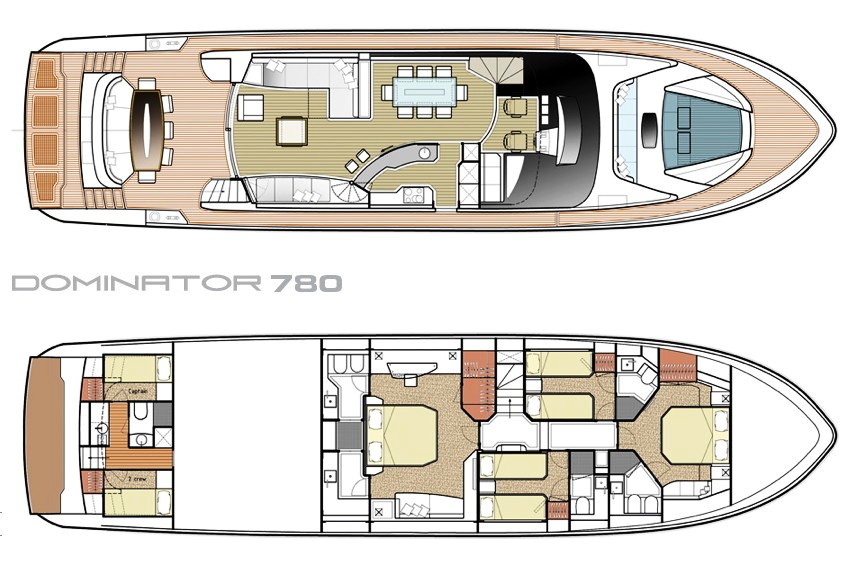 Saint Anna, KAIJOU) is a Dominator 780 built in 2010 measuring 23,95m (78' 6"). This new generation vessel sets a turn-about in the designing philosophy of Dominator Yachts and is the result of the close collaboration between the Designers of Team 4 Design from Venice and the Engineering Group of the Yard.