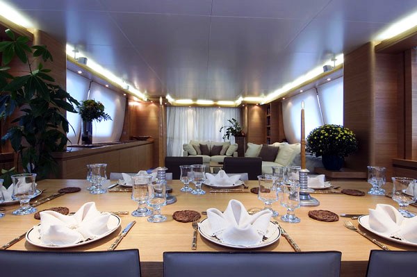 Yacht ARMENI’s saloon is a large open space divided into living and dining areas, connected to a well equipped galley on the main deck. The Falcon’s cabins are impressive and extremely comfortable and the separate crew area with dinette on the fore lower deck grants privacy and discretion to the owners and their guests.