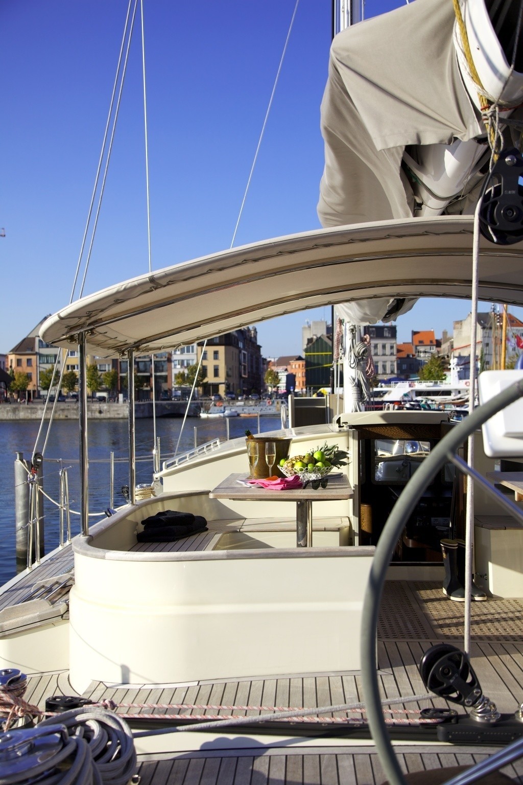 The yacht is based in Villefranche and charters throughout the Western Mediterranean during the summer and is available for charter in Antwerp during the winter.