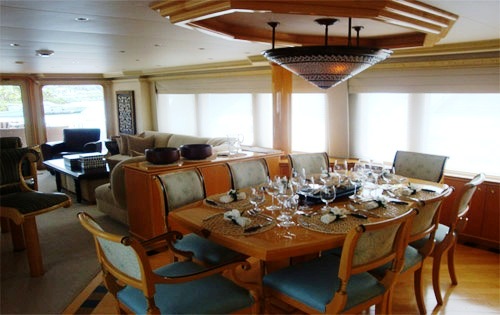 Further forward of the salon is the formal dining area able to seat 8. The Sky lounge with a full wet bar with stool seating for 3, a comfortable couch, game table and seating for 4. There is an entertainment centre with 27” TV/DSS/DVD/CD/Stereo Cassette with Bose Home Theatre Speaker System.
