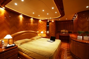 Between the salon and the owner’s suite, there are the stairs leading to the upper and the lower decks where the remaining cabins are located.