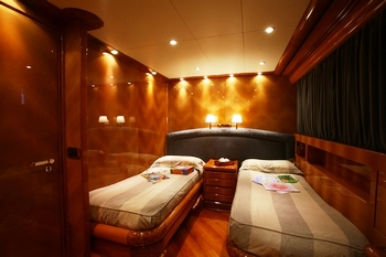 Between the salon and the owner’s suite, there are the stairs leading to the upper and the lower decks where the remaining cabins are located.