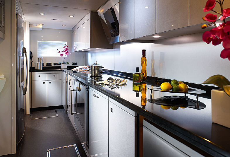 The Predator 92 Sport accommodates up to 8 guests in four luxury guest cabins, all with their own en-suite bathroom.