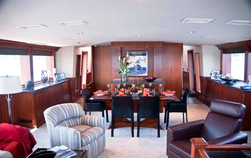 Motor yacht ESSENCE has a Main Salon with light and airy décor with rich American Cherry Wood. The Salon features a large sofa with coffee table and 3 occasional chairs plus a large desk with chair. Equipped with a full ...
