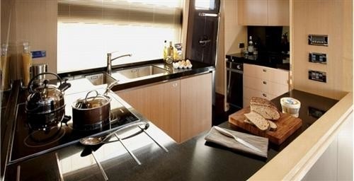 The galley is situated to the port side and is equipped with the very latest appliances. A side deck access door allows Sabbatical III’s experienced crew of 2 to optimise service without disturbing guests onboard. The galley area can be closed off for further privacy if required.