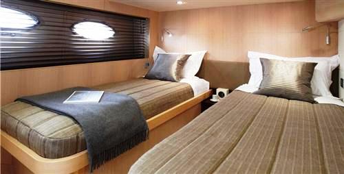 The spacious Master stateroom is full width of the beam and features a private breakfast area, walk-in wardrobe and ensuite bathroom. There are also 3 double and 1 twin ensuite guest cabins with ample storage.