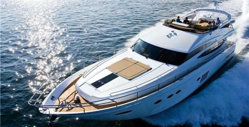 The new model features an elegant and contemporary profile with a deep-V hull, which uses resin infusion technology to enable a weight reduction and therefore higher speeds, lower fuel consumption and an increased cruising range.