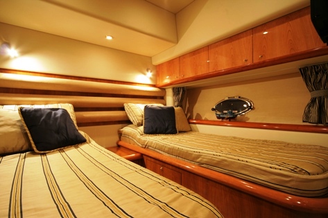 There is also a VIP Cabin forward with queen size bed and en-suite bathroom, and 2 identical Twin Cabins with 2 single beds and one with en-suite bathroom.