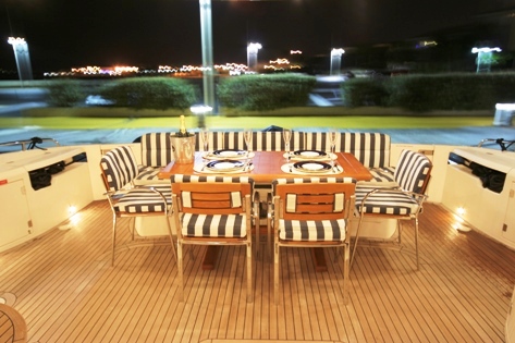Guests can choose to dine inside, on the aft deck, or on the incredibly spacious fly bridge which has a barbecue, fridge and ice maker. There is also a great sunbathing areas forward and on the fly bridge.