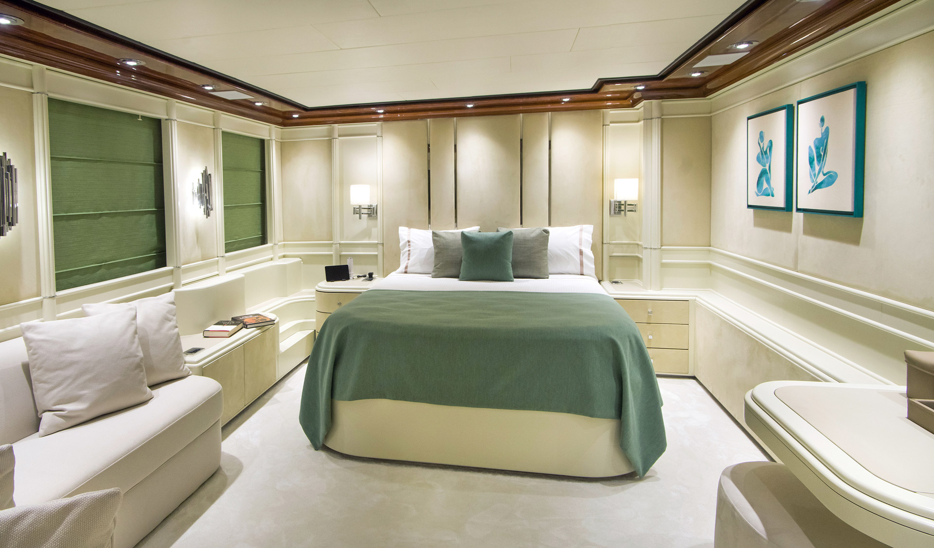 The huge cabin features a King Size bed a “his and hers” walk in closet, a 3 seat sofa couch, Satellite TV, DVD player, CD home stereo system along with air-conditioning plus an ensuite with 2 two basins, an onyx marble bath/Spa Pool and glass shower.