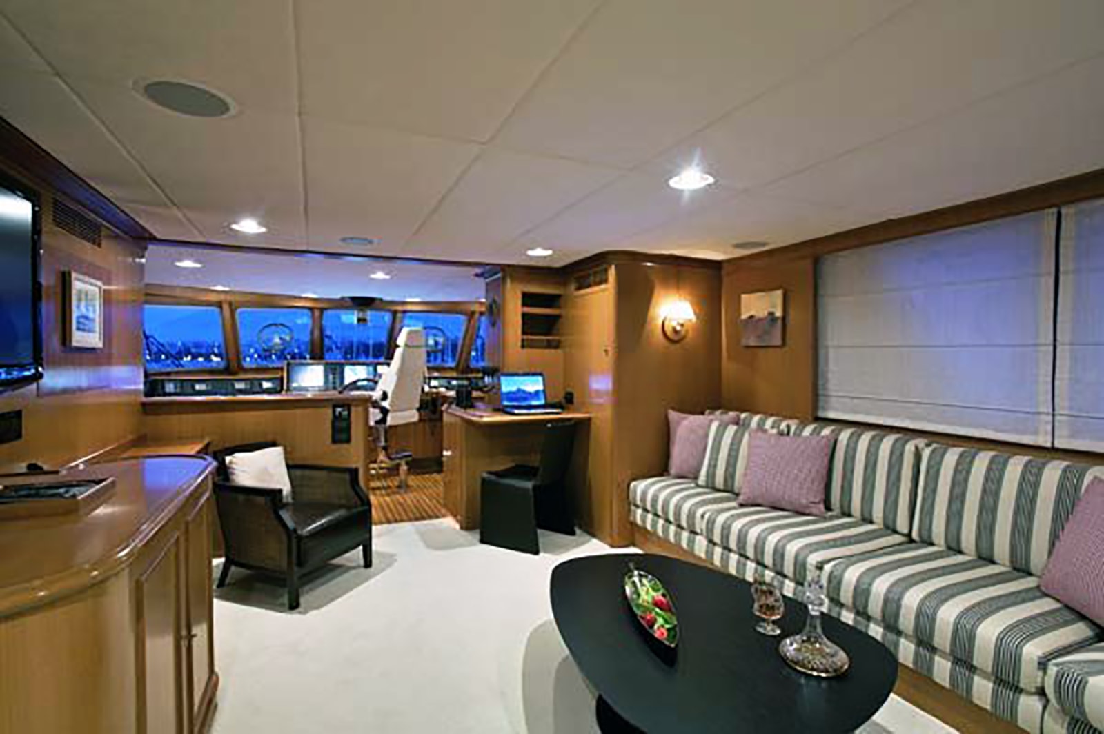 She is a steel displacement yacht with a large volume thanks to her 103ft length and wide beam of 23.7 ft. This sturdy vessel ensures smooth cruising throughout the and she also features stabilisers at anchor for extra stability.