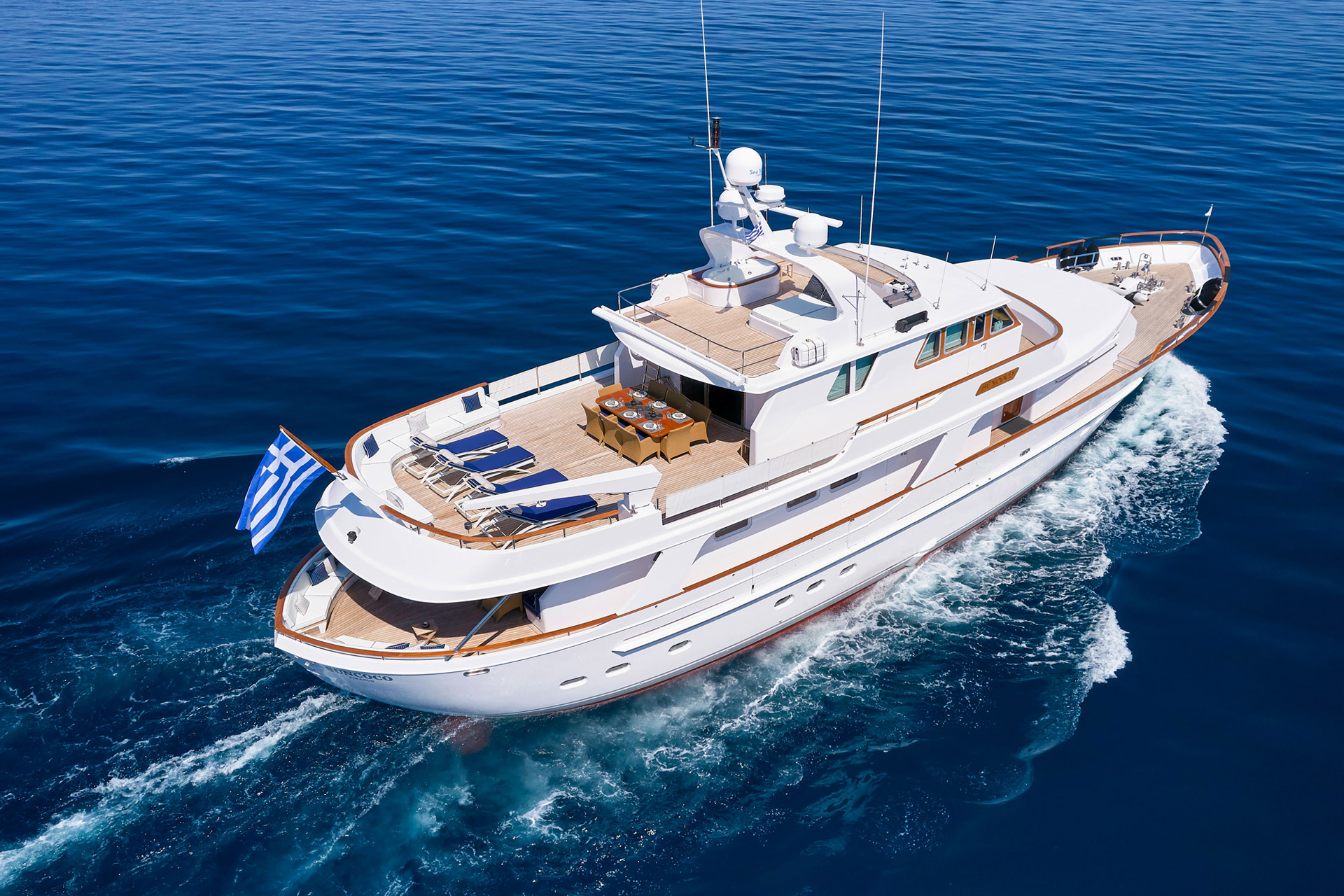 Luxury motor yacht SUNCOCO is a 31,40m (103’) charter yacht designed by De Vries and built by Lowland, Holland. She is a steel displacement yacht with a large volume thanks to her 103ft length and wide beam of 23.7 ft. This sturdy vessel ensures smooth cruising throughout the and she also features stabilisers at anchor for extra stability.