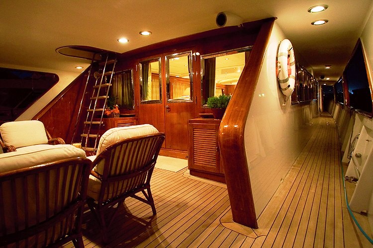 The charter yacht SYLVIANA also boasts wide walk around decks on both levels giving an extra sense of exterior space.