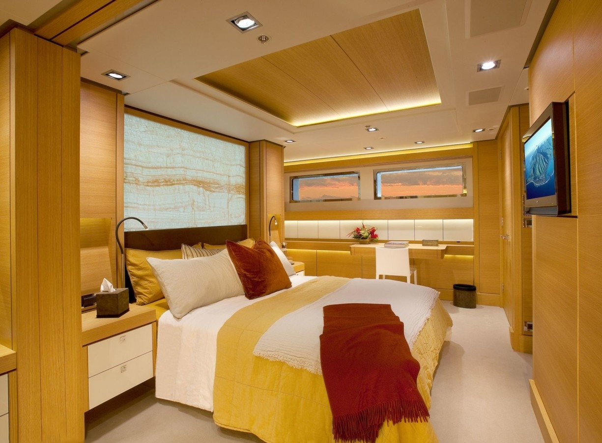 The guest cabins on the Main deck can be converted into two VIP suites. Wall disappears and beds fold back against the wall, giving flexibility. WATERSPORTS: