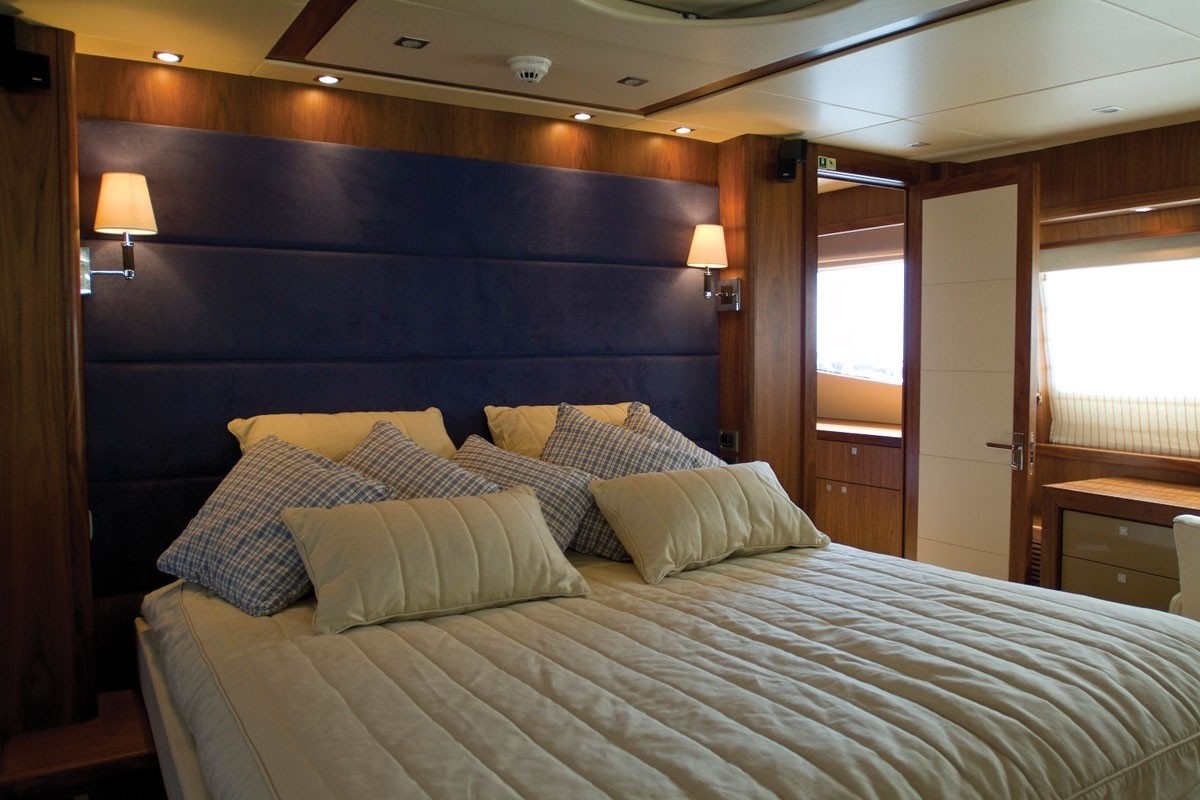 The dining room is able to seat 10 guests for sumptuous cuisine served up by the talented chef. The salon and dining room are separated by a central wall, that leaves access to port and starboard, increasing the sense of space throughout the main living areas.