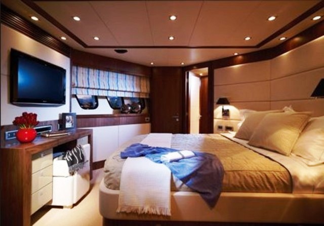 The yachts main salon features large windows to port and starboard along with beautiful wooden floors and plenty of seating on an L shaped couch to port and another smaller couch to starboard. The dining room is able to seat 10 guests for sumptuous cuisine served up by the talented chef.