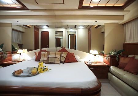 Motor yacht SANTANA IV OF PLYMOUTH can accommodate 8 guests in 4 cabins. Her spacious full width Master cabin is located amidships, with sofa, dressing table with pouf and an en suite bathroom. A Double VIP cabin is located forward while two twin cabins with en suite bathroom are located between the Master and the VIP cabin.