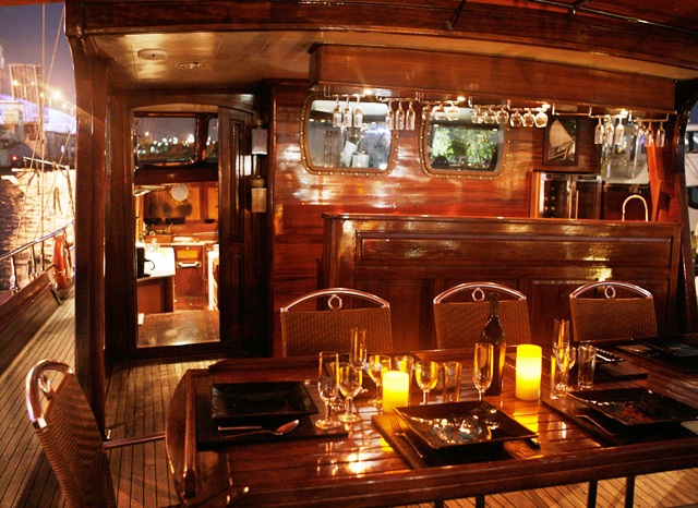 QUASART has an aft deck featuring a beautiful, fully stocked wet bar and a large dining table. The aft deck is the perfect spot for relaxing and enjoying a cocktail or al fresco meals. The fore deck provides lots of space to relax and enjoy the wonderful sunshine.