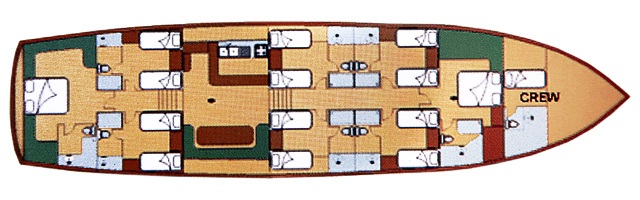 She is a romantic yacht, evocative and inspirational, and comes with ocean kayaks, snorkel equipment, and a dinghy with outboard motor. Sailing yacht QUASART is able to accommodate up to 12 guests overnight in 6 cabins (4 twins and 2 double cabins).