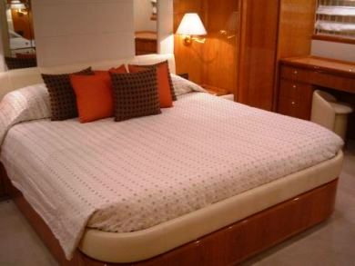 Motor yacht DUST can accommodate 8 guests in 4 cabins on the lower deck. The Master cabin features a walk in wardrobe, TV, Video, DVD, CD-player, ensuite-bath with bidet. There is also a VIP cabin and 2 Twin cabins one of which has an additional pullman bed for a child. All the guests’ cabins are en-suite and air-conditioned.
