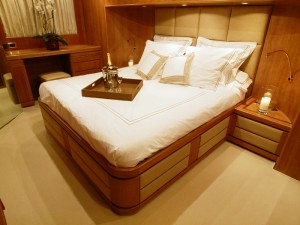 Charter yacht NOON TEASE can accommodate up to 6 guests in 3 cabins including a full width of the beam Master cabin located on the main deck, with ensuite bathroom, large windows and remote controlled blinds over the bed offering ...