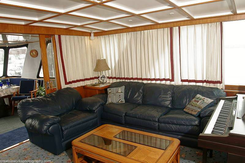 The yachts main salon provides plenty of Seating on sofas and chairs and large window provide plenty of natural light. There is a TV/DVD, Karaoke Machine and Digital Piano for entertainment.