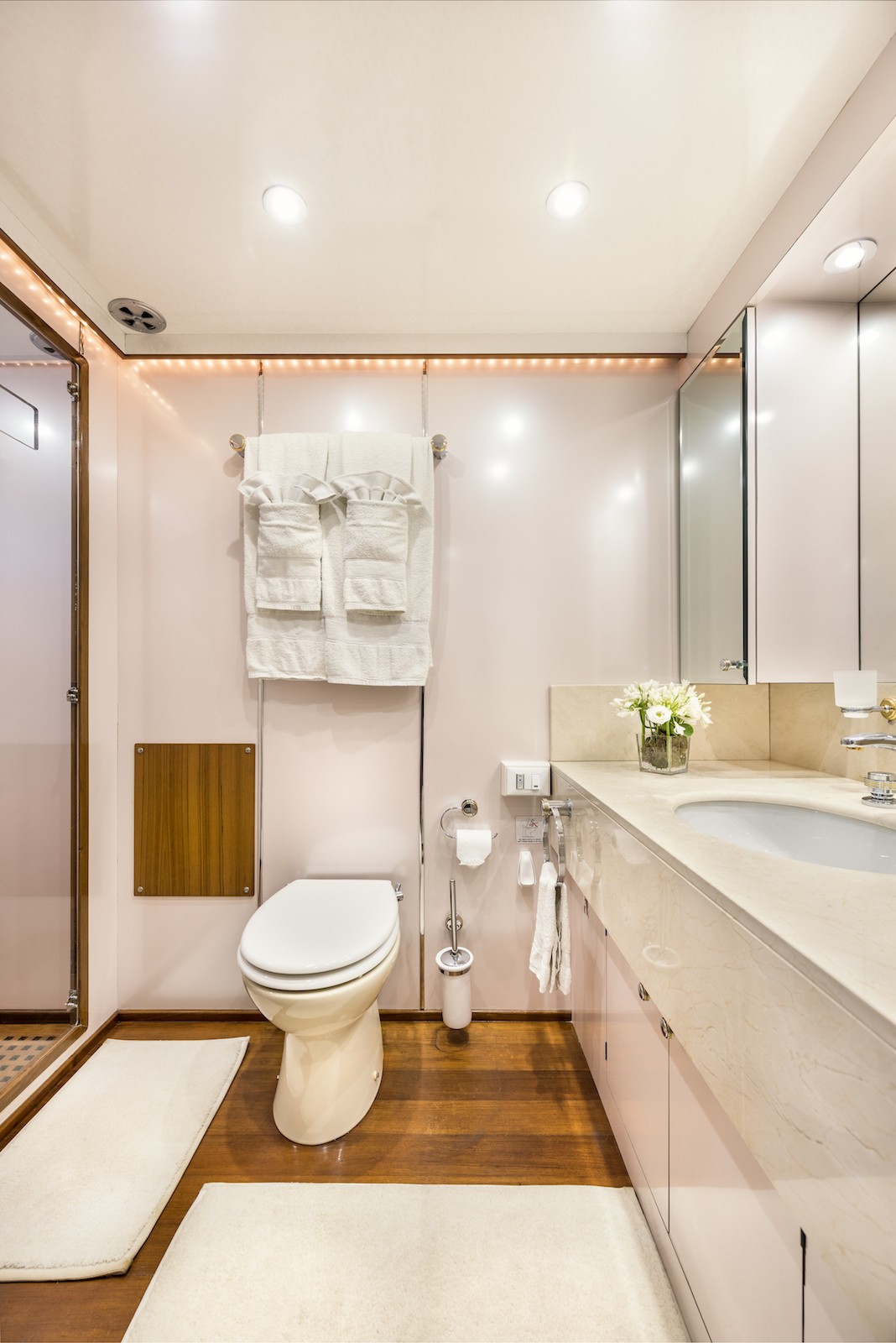 Motor yacht ANTISAN can accommodate up to 11 guests overnight with the ability to have 40 guests onboard cruising. Her 5 cabins comprise of a full-width master cabin located on the main deck forward with king-size bed, sitting area, wardrobe and spa pool bathroom with shower plus a convertible sofa.