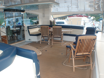 When stepping on board Captiva the first thing guests notice is her expansive Cockpit which offers loads of space to spread out and relax. There is plenty of seating and alfresco dining all under the shade of the hard top bimini.