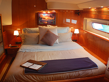 Captiva has three equal size queen cabins available for charter guests, all with their own private bathroom.
