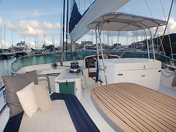 Guests can also choose to soak up the sun on the aft deck on portable sun beds while taking in the Caribbean views or watch the kids on the water toys.