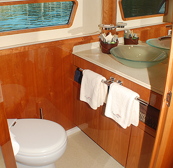 Captiva has three equal size queen cabins available for charter guests, all with their own private bathroom.