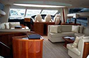 The dining table in the salon seats 6 guests and it is easy to view the Captain manoeuvring this speedy yacht from prime position in the salon .The Sunseeker charter yacht ILE BOHEMIEN can reach impressive speeds of 26-35knots thanks to her twin 1676 CATERPILLAR engines.