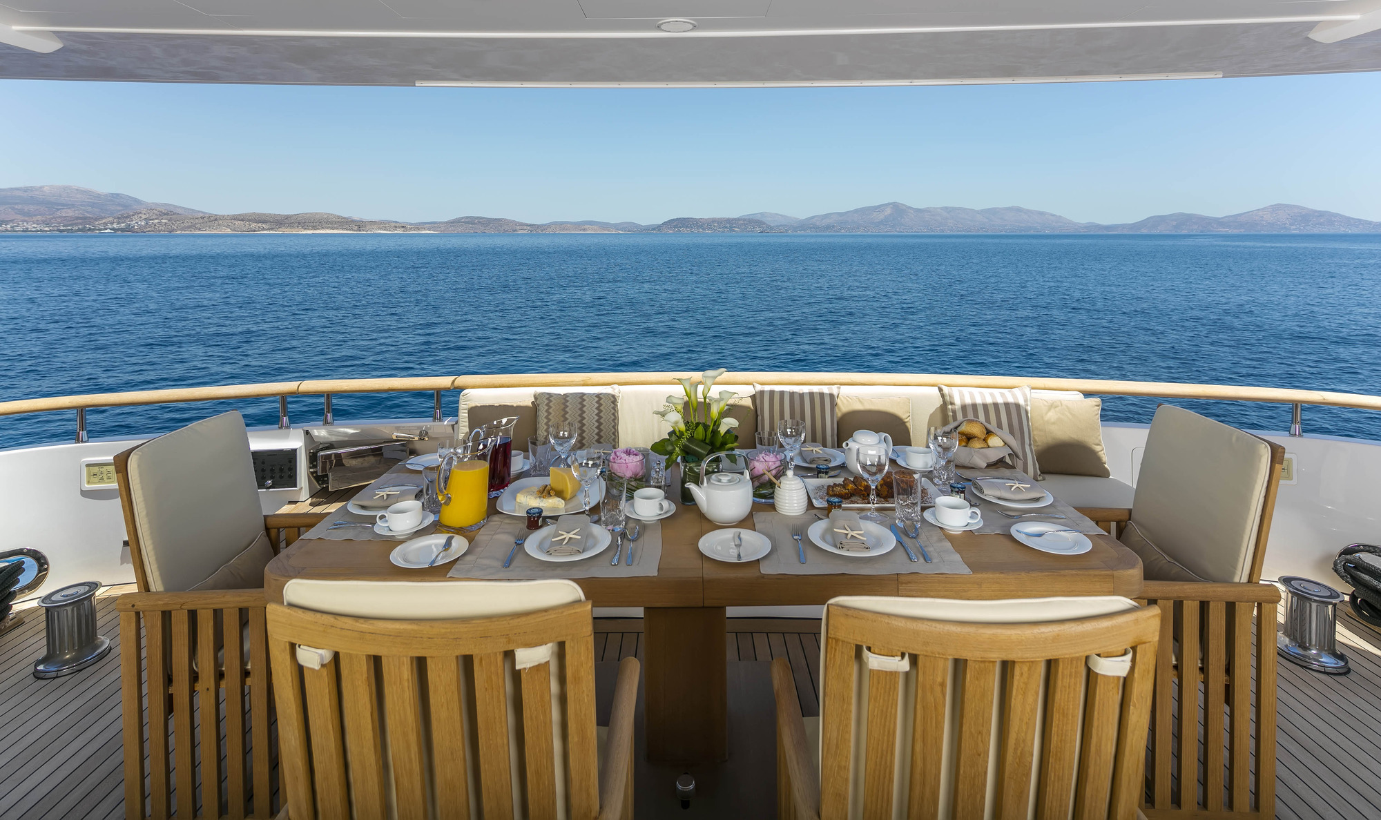 NOTABLE FEATURES: ~ Vast sunbathing area ~ Array of water toys ~ Alfresco & indoor dining ~ Swim platform ~ Air conditioning ~ Stabilisers ~ Wi-fi connection