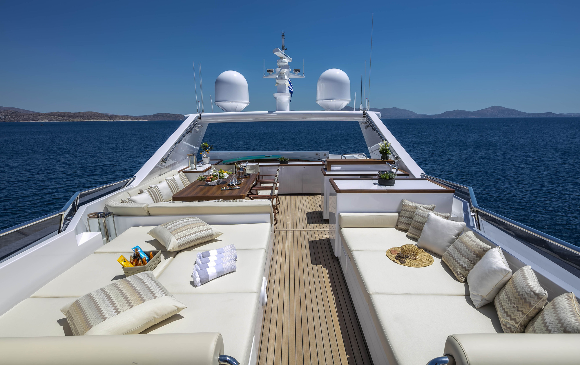 Luxury motor yacht ALEXIA VI (ex My Elisa) is an Akhir 100 built by Cantieri di Pisa in 2005. She underwent a refit in 2016, which included full repainting, installation of new Audio Video System with Apple TV Integration, and a new flybridge layout.