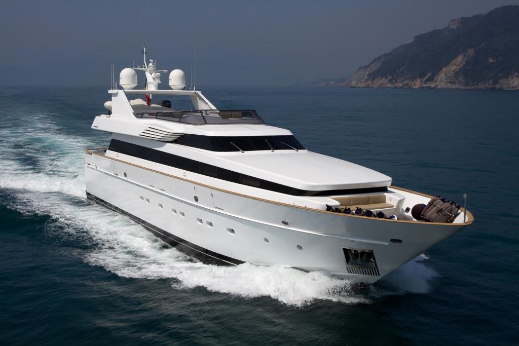 Luxury motor yacht ALEXIA VI (ex My Elisa) is an Akhir 100 built by Cantieri di Pisa in 2005. She underwent a refit in 2016, which included full repainting, installation of new Audio Video System with Apple TV Integration, and a new flybridge layout.