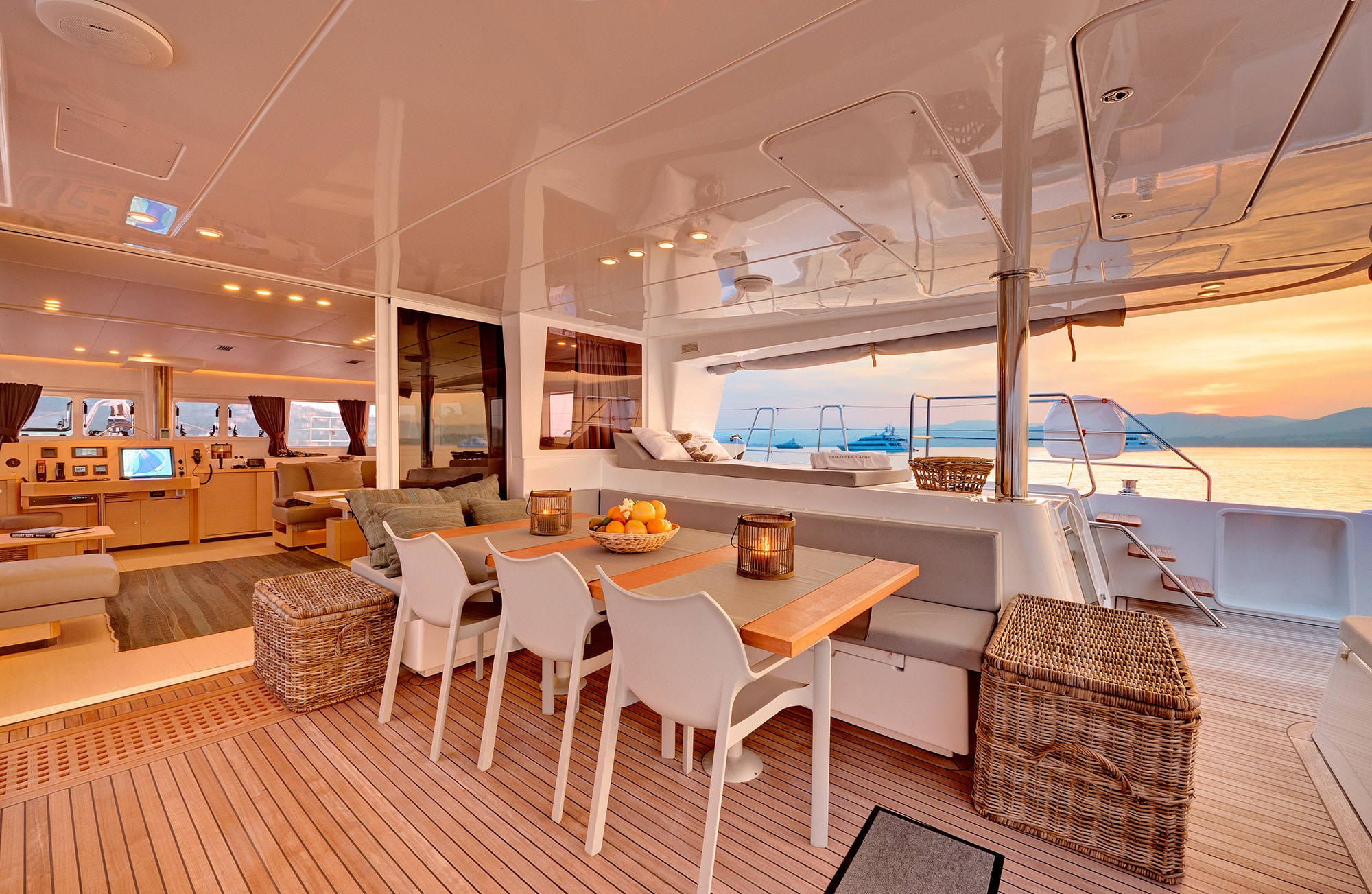 She has huge deck spaces including her aft deck area which includes an alfresco dining table to enjoy the fabulous gourmet meals your personal chef will be whipping up during your vacation. The large aft deck area is the perfect place to lounge and relax with plenty of seating and sun-pads.