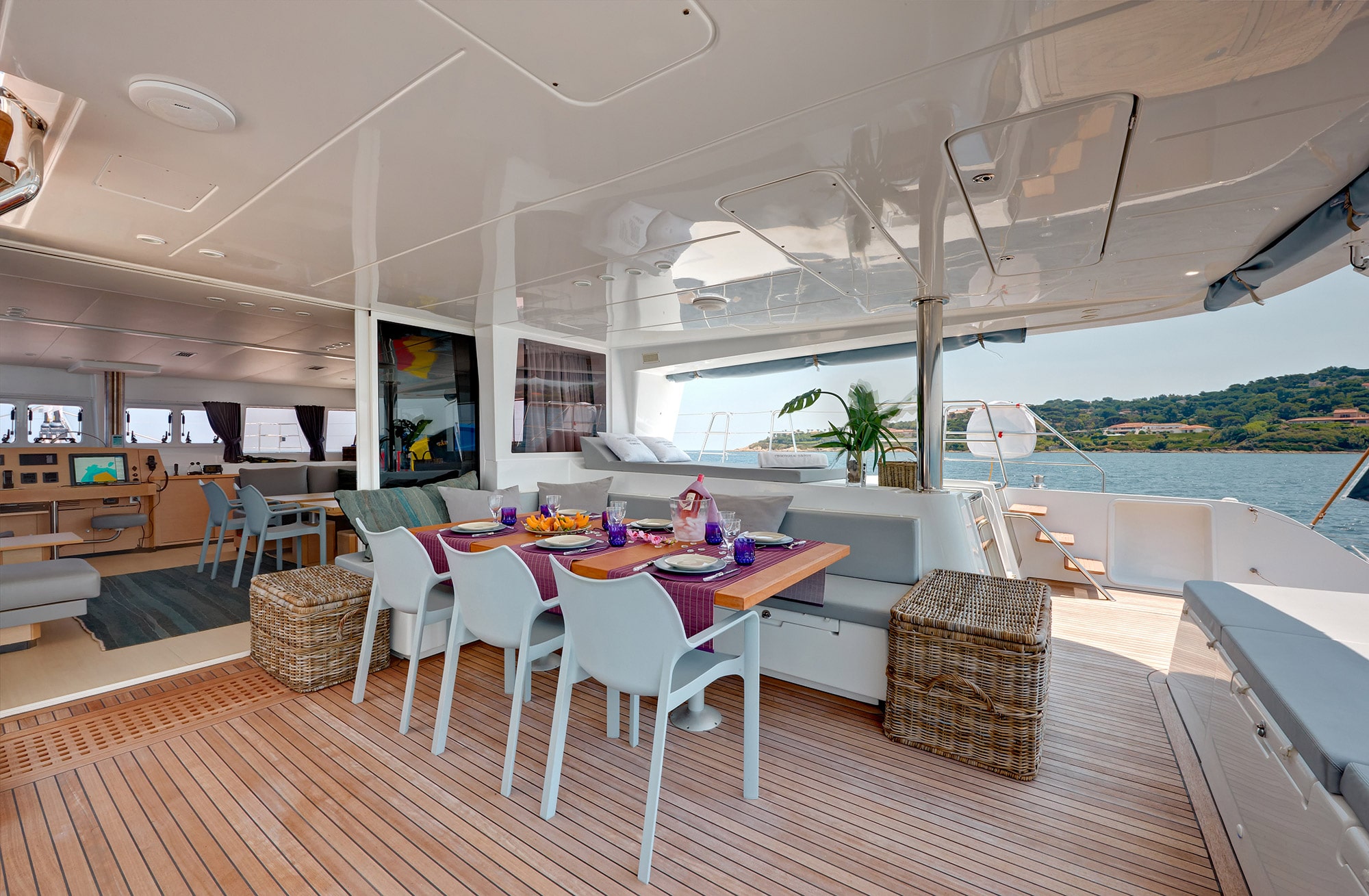 She has huge deck spaces including her aft deck area which includes an alfresco dining table to enjoy the fabulous gourmet meals your personal chef will be whipping up during your vacation. The large aft deck area is the perfect place to lounge and relax with plenty of seating and sun-pads.