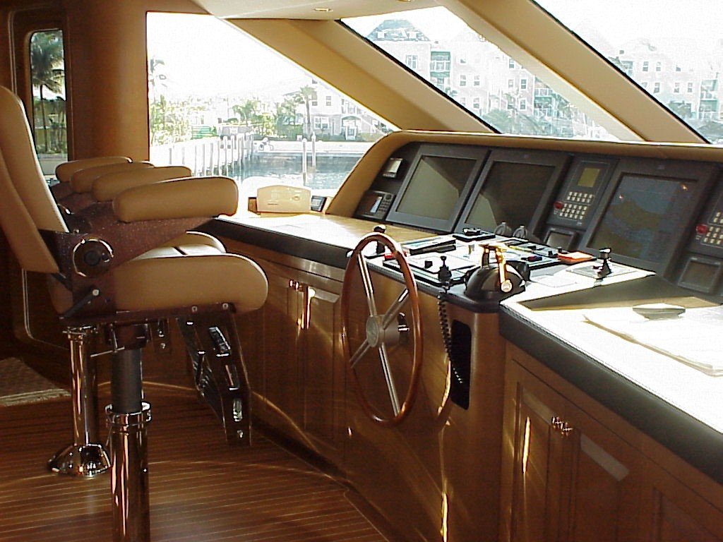 Her Master Stateroom is located on the Main Deck forward and features a King bed, en-suite His and Hers head with bidet, Spa Pool tub and separate full Euro shower plus an Entertainment System with 42” flat screen TV/DVD/CD.