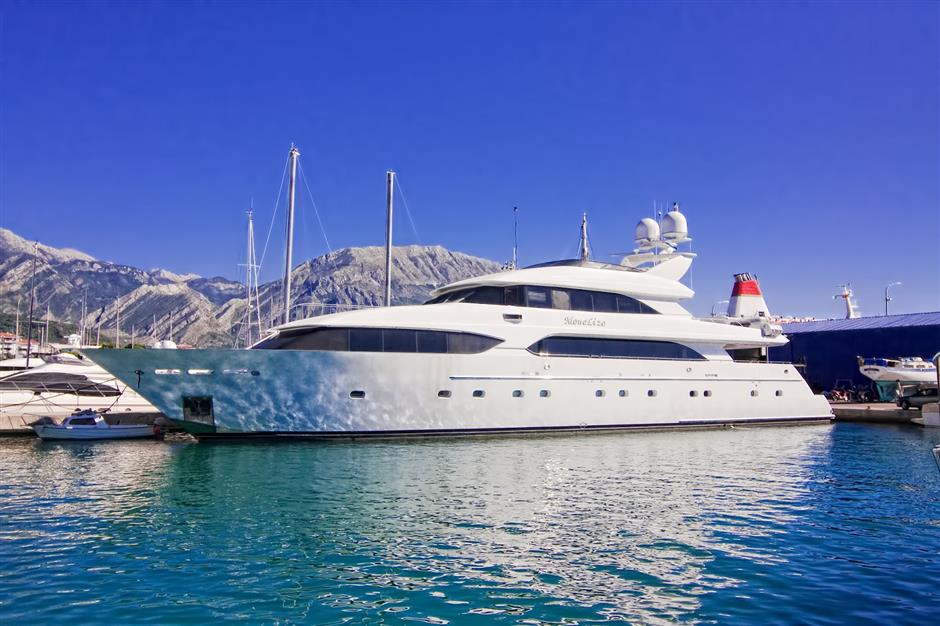 Also worth noting is that this yacht has a gymnasium with equipment including a treadmill, weight bench, and Life Fitness 9100 machine.