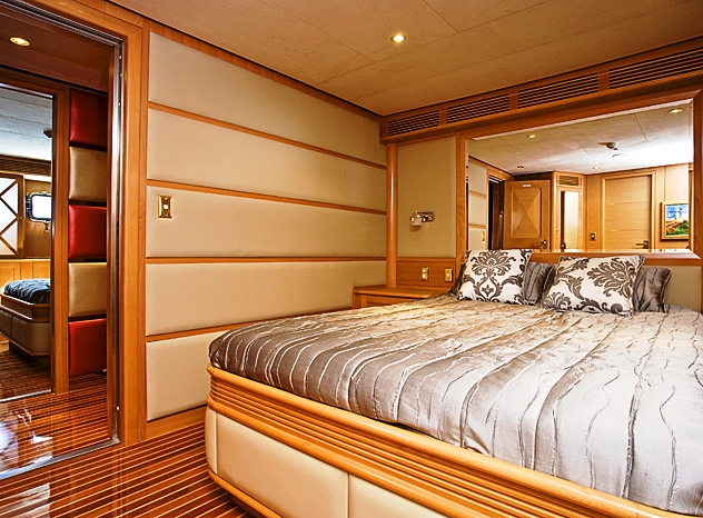She can accommodate up to 10 guests overnight a sumptuous Master Suite on the main deck, complete with private office and spa, 2 VIP cabins and two double cabins.
