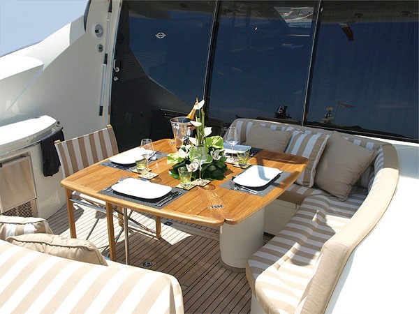The luxury Predator 72 AMADEUS features a fine blend of style, technology and craftsmanship. The comfortable salon has a lounging and a dining area and opens straight out onto the spacious aft area to create a flexible combined indoor/outdoor social space. There is an additional sunbathing area forward.