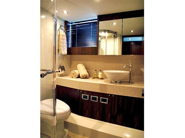 The charter yacht AMADEUS can accommodate up to 6 guests in a full beam master aft cabin with ensuite A VIP Cabin located forward with ensuite and a twin cabin located on the starboard side with en suite that doubles as a day head. There is an LCD TV in all of the cabins.
