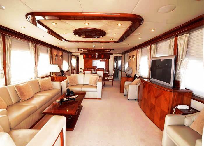 MY PLEASURE’s main salon is comfortable and elegant with seating on the port side and a large television and entertainment system located to starboard. Further forward is the dining area where you can gather to enjoy the fine Eastern Mediterranean cuisine on offer.
