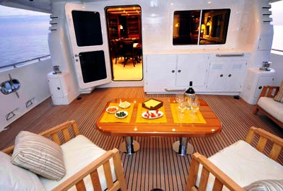 Expedition motor yacht SILVIA M features great outdoor entertaining areas including an Aft dining area on the first bridge and flying bridge. There is also a sunbathing area on the fly bridge and a BBQ.