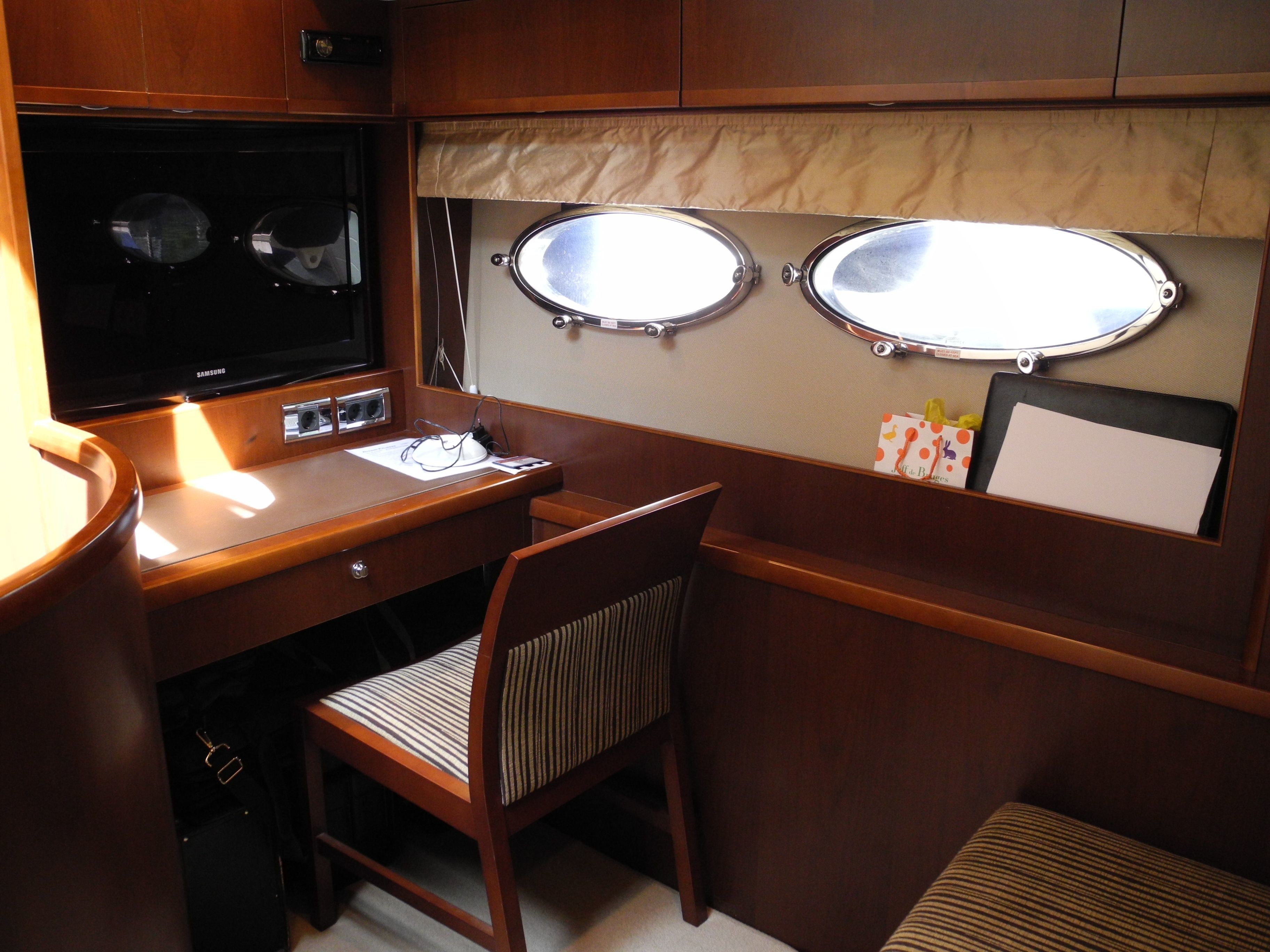The luxury Princess motor yacht DREAM PRINCESS can accommodate up to 6 guests in 3 staterooms. The Owners suite is full width of the beam with a large double bed with drawers below and twin bedside tables. There is a large wardrobe, LCD TV/DVD/radio and En-suite with shower.